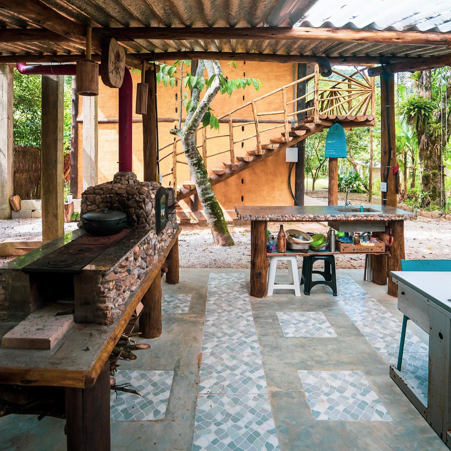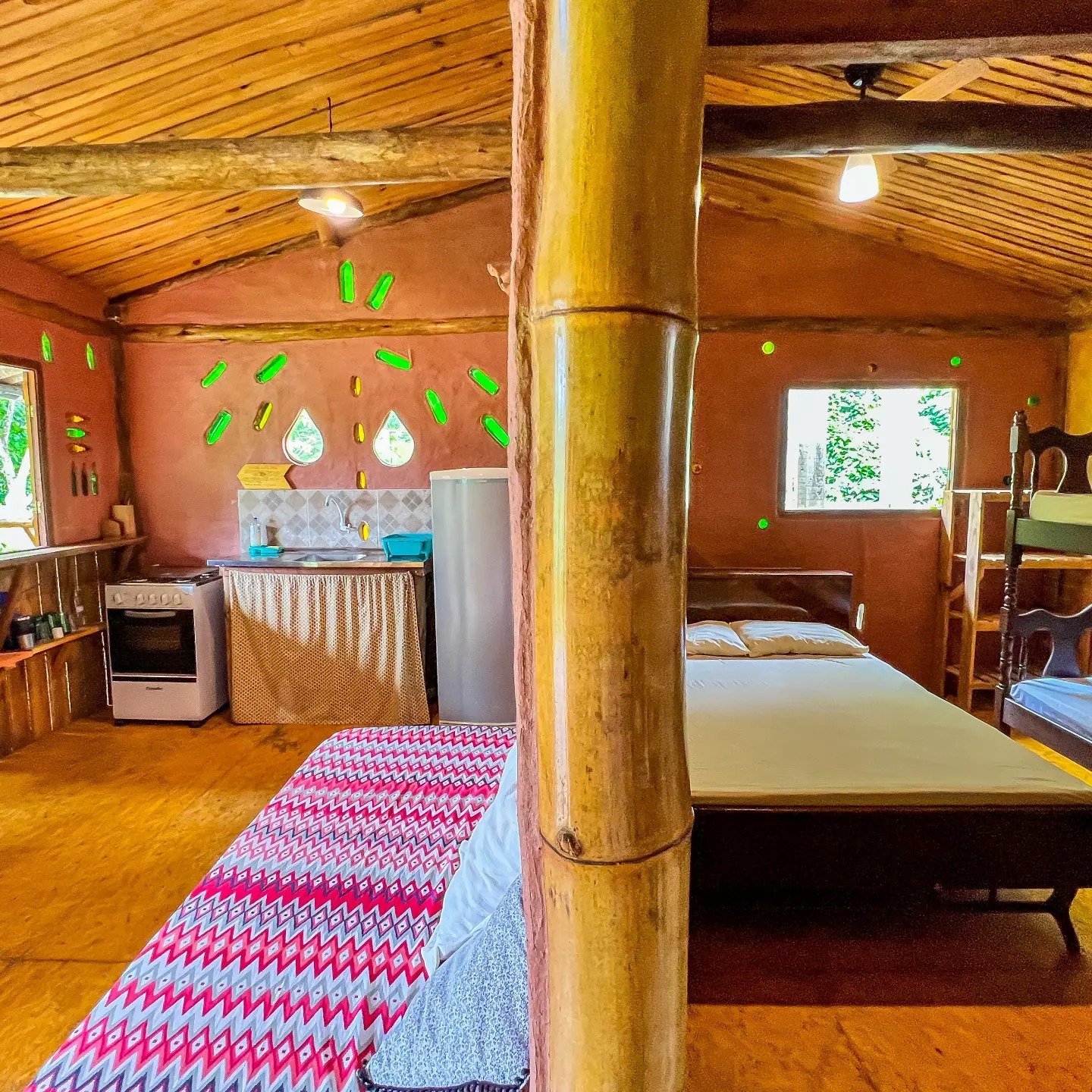 Trata-se de um espaço-tempo para experienciar a vida em consonância com toda natureza que habita ali. Pelas paredes das acomodações, a identidade, o traço marcado dessa nossa forma de integração.