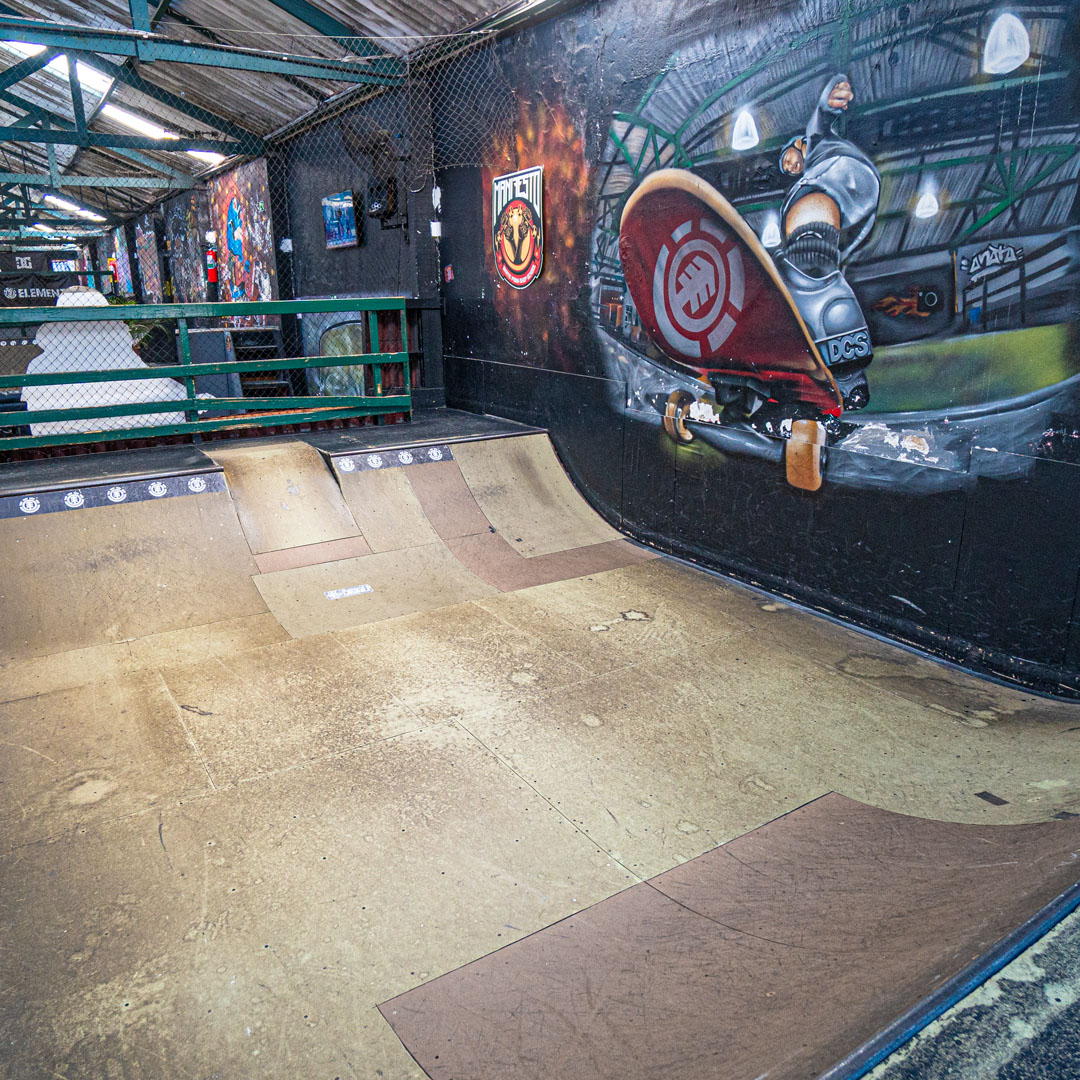 Ficamos localizados em um galpão de mil metros quadrados e somos considerado um dos maiores skate parks e escola de skate indoor do Brasil.