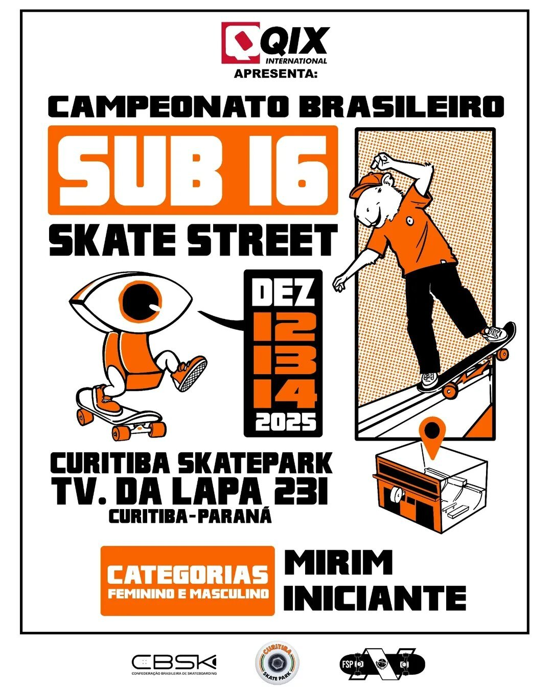 O Campeonato Brasileiro Sub-16 de Street conta com realização da Federação de Skate do Paraná (FSP), homologação da Confederação Brasileira de Skateboarding (CBSk) e apoio institucional da Prefeitura de Curitiba (PR).