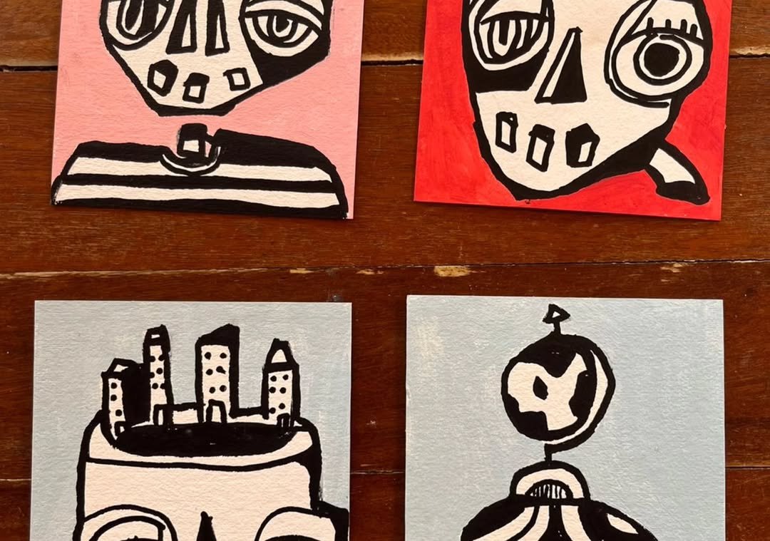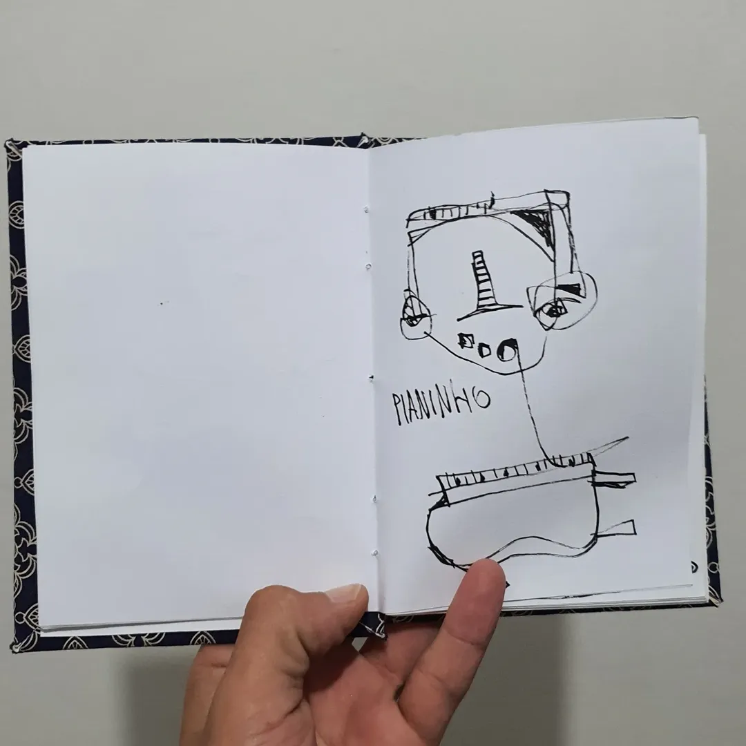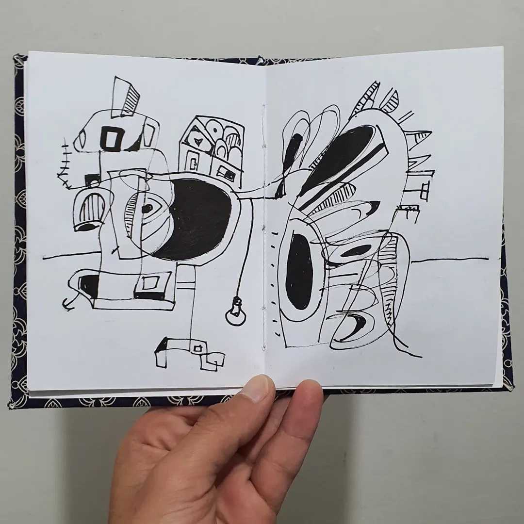 O desenho virou extensão disso: fragmentos internos que ganham forma e depois se transformam em algo maior, externo, coletivo.